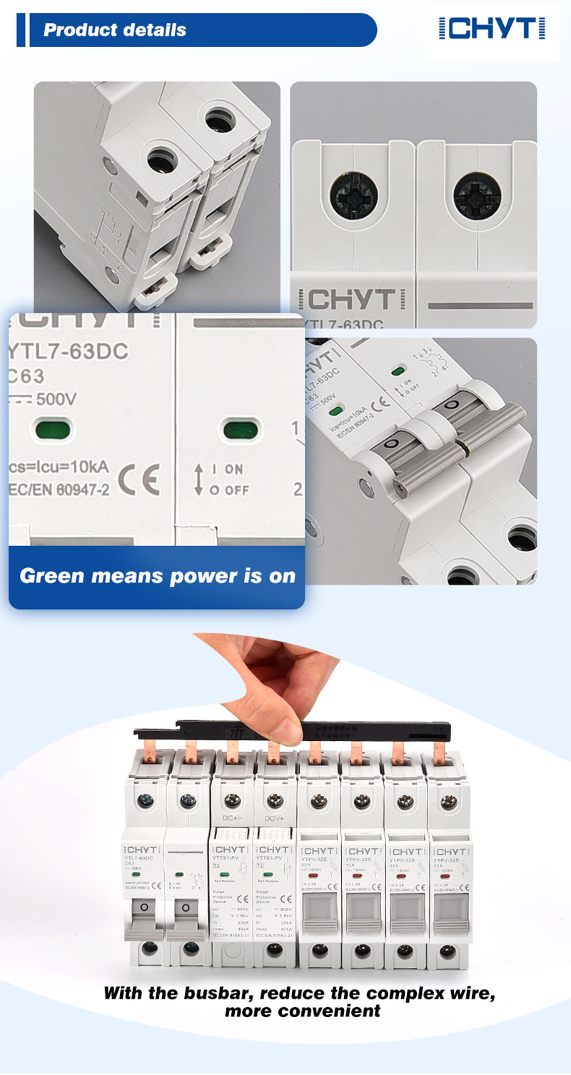 చైనా సప్లయర్స్ ICHYTI NB1-63 dc సోలార్ mcb సర్క్యూట్ బ్రేకర్ సురక్షితమైన, నమ్మదగిన మరియు శక్తివంతమైన విద్యుత్ రక్షణ పరికరం. ఇది అధిక-నాణ్యత పదార్థాలు మరియు ఖచ్చితత్వంతో ప్రాసెస్ చేయబడిన, అధిక సామర్థ్యం మరియు స్థిరమైన పనితీరు లక్షణాలతో తయారు చేయబడింది. కేసింగ్, ఆపరేటింగ్ మెకానిజం, థర్మల్ ఓవర్లోడ్ ప్రొటెక్షన్, ఎలక్ట్రోమాగ్నెటిక్ ట్రిప్పింగ్, కాంటాక్ట్ సిస్టమ్ మరియు ఆర్క్ సిస్టమ్ వంటి బహుళ భాగాలను కలపడం ద్వారా, ఎలక్ట్రికల్ పరికరాలు మరియు వినియోగదారుల భద్రతను నిర్ధారించడానికి సమగ్ర ఓవర్లోడ్ మరియు షార్ట్ సర్క్యూట్ ప్రొటెక్షన్ ఫంక్షన్ను అందించవచ్చు. అదనంగా, dc సోలార్ mcb సర్క్యూట్ బ్రేకర్ కూడా బలమైన శాశ్వత మాగ్నెట్ ఆర్క్ వ్యవస్థను కలిగి ఉంది, ఉత్పత్తి యొక్క షార్ట్ సర్క్యూట్ సామర్థ్యాన్ని మరింత మెరుగుపరుస్తుంది, 6KA స్థాయికి చేరుకుంటుంది. dc సోలార్ mcb సర్క్యూట్ బ్రేకర్ ఆధునిక విద్యుత్ రంగంలో ఒక ముఖ్యమైన విజయం. దీని ఆవిర్భావం సౌర శక్తి వంటి కొత్త శక్తిని పెద్ద ఎత్తున ప్రచారం చేయడానికి బలమైన మద్దతును అందిస్తుంది మరియు ప్రజల జీవితాలు మరియు పనికి మరింత సౌలభ్యం మరియు సౌకర్యాన్ని అందిస్తుంది.