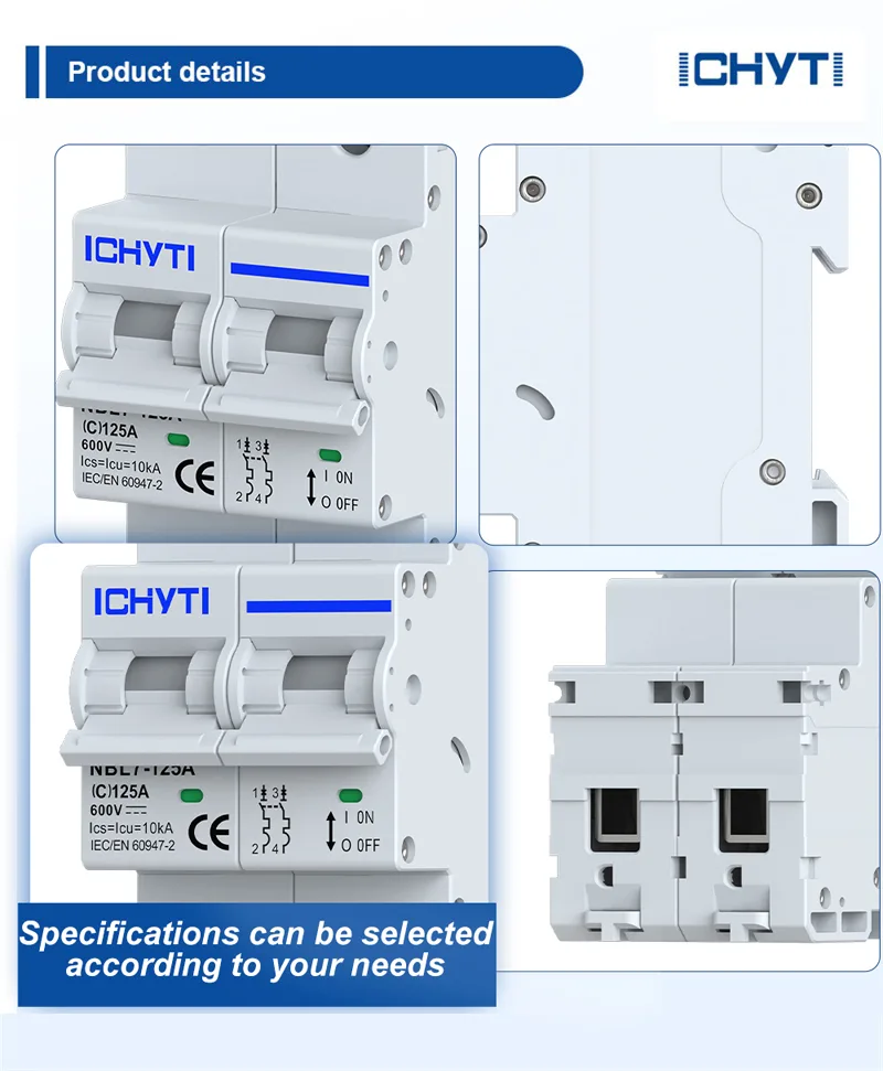 సౌర శక్తి నిల్వ మరియు కొత్త అవస్థాపన రంగాలలో కస్టమర్ల అప్లికేషన్ అవసరాలకు ప్రతిస్పందనగా, ICHYTI తయారీదారు కొత్త NBL7-125A నాన్ పోలారిటీ 125A DC MCBని విడుదల చేసింది. ఈ DC సర్క్యూట్ బ్రేకర్ DC1000V/DC600V యొక్క రేట్ ఆపరేటింగ్ వోల్టేజ్ మరియు 80A నుండి 125A వరకు రేటెడ్ కరెంట్ పరిధితో సర్క్యూట్ దృశ్యాలకు అనుకూలంగా ఉంటుంది. ఇది DC సిస్టమ్ల కోసం షార్ట్-సర్క్యూట్ రక్షణ మరియు ఓవర్లోడ్ రక్షణ విధులను సాధించగలదు, అదే సమయంలో సర్క్యూట్ ఐసోలేషన్ మరియు కంట్రోల్గా కూడా పనిచేస్తుంది.
